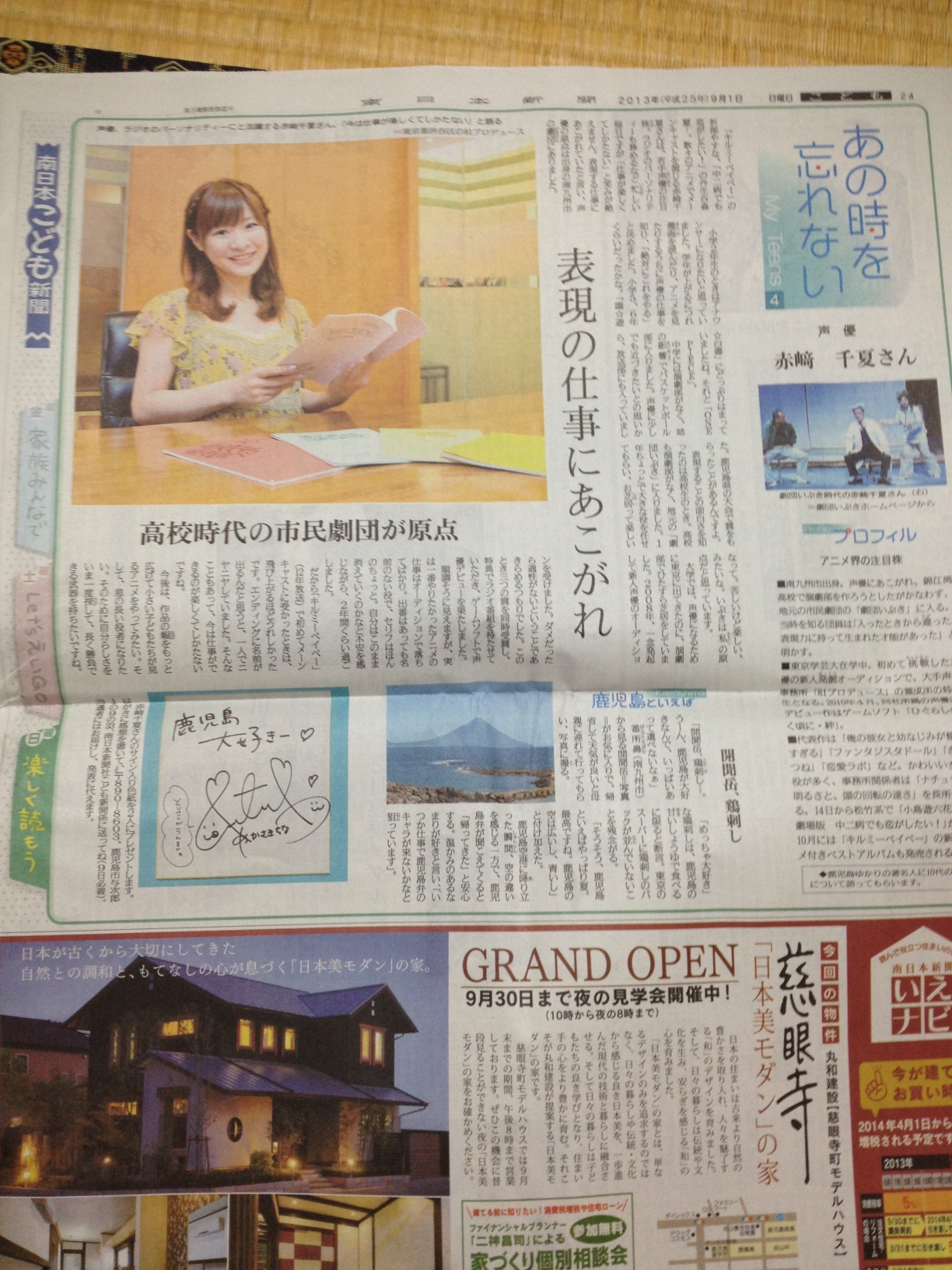 ☆赤﨑 千夏(あかさき ちなつ、1987年8月10日 - )は、日本の声優、舞台女優。学位は学士(教育学)(東京学芸大学)。鹿児島県川辺郡知覧町(現:南九州市)出身。81プロデュース所属。
