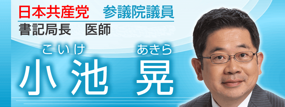 小池 晃(こいけ あきら、1960年6月9日 - )は、日本の政治家、医師。参議院議員(3期)。日本共産党中央委員会政策委員長(政策責任者)、党副委員長、日本共産党参議院議員団長、参議院幹事長、常任幹部会委員を歴任し、2016年4月より日本共産党中央委員会書記局長。