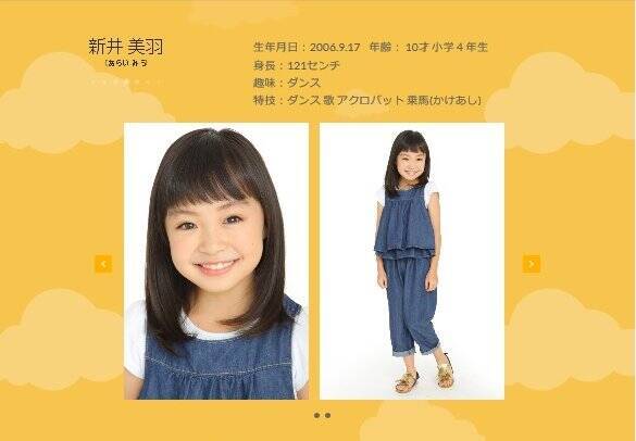 新井 美羽(あらい みう、2006年(平成18年)9月17日 - )は、日本の子役である。スマイルモンキー所属。