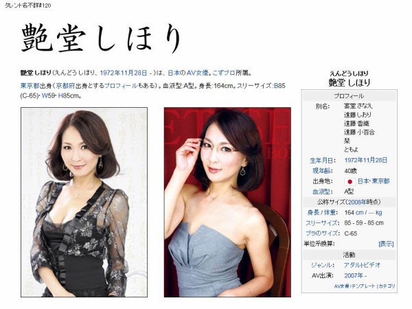 艶堂 しほり(えんどう しほり、1972年11月28日 - )は、日本のAV女優。こずプロ所属。
