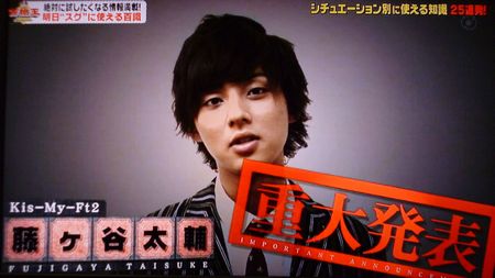 藤ヶ谷 太輔(ふじがや たいすけ、1987年6月25日 - )は、日本の歌手、俳優、タレントで、男性アイドルグループ・Kis-My-Ft2のメンバー。